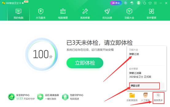2、在打開的界面,搜索框里輸入【彈窗過濾】。