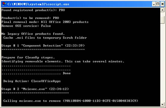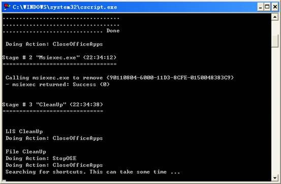 6、執(zhí)行完畢窗口會(huì)自動(dòng)關(guān)閉,窗口關(guān)閉后,就代表您的office程序已經(jīng)卸載成功了,可以進(jìn)行安裝Microsoft Office 2003的完整版本了。