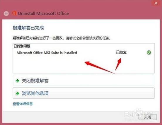 5、如果提示“已修復(fù)”這說明你電腦上的OFFICE軟件已完整的卸載了?梢赃M(jìn)行安裝Microsoft Office 2003的完整版本了。