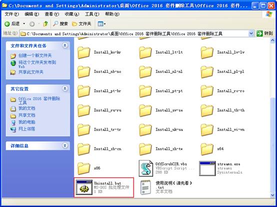 文件夾,打開“Office 2016 套件刪除工具”文件夾。雙擊鼠標(biāo)運(yùn)行“Uninstall.bat”。