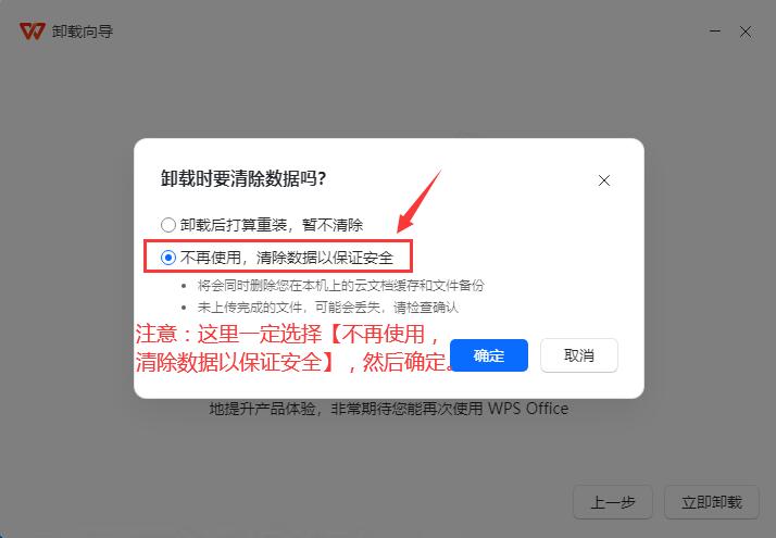 5、注意:這里一定選擇【不再使用,清除數(shù)據(jù)以保證安全】,然后確定。