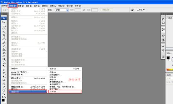 9、在打開的界面上方點擊“編輯”,然后最下面“首選項”,點擊右側(cè)的“文字”,