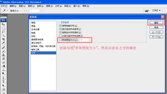 10、去除勾選“字體預(yù)覽大小”,然后點擊右上角的“確定”