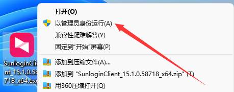 2、在向日葵遠程安裝包上右擊鼠標,選擇以管理員身份運行打開程序。